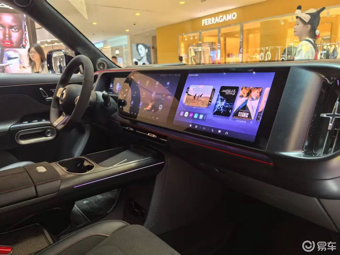 车内布局简洁,大量碳纤维式样装饰为内饰增添了浓郁的运动气息。25.6 英寸AR增强型抬头显示,将重要的行车信息直接投射在前挡风玻璃上,提升了驾驶的安全性和便利性。10.3英寸液晶仪表和13英寸OLED 2.5K中控双联屏,显示清晰,色彩鲜艳,支持主副驾分区娱乐信息显示。