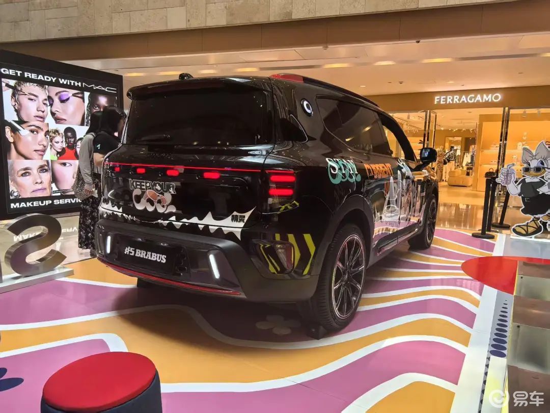 而在主场地,除了smart 1 米奇限定艺术车,还有一辆smart 5 BRABUS超能版。整车采用Boxy设计语言,方正硬朗的车身线条勾勒出硬派的轮廓,结合0.43轮高比与0.618黄金轴身比,兼顾视觉协调性与空间实用性,风阻系数低至0.27。