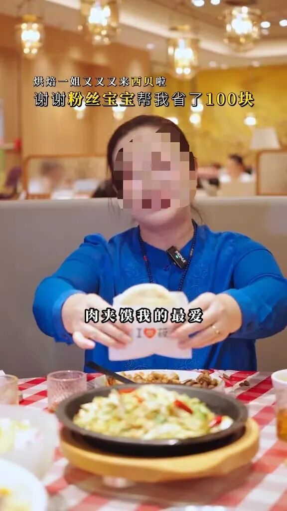 10月16日,“销魂姐”又发了一条探店视频为西贝宣传。这条视频中,“销魂姐”在西贝餐厅餐桌前唱了一首改编版的热门歌曲《没出息》,一边唱一边说:“宝贝们,我在西贝等你们”。