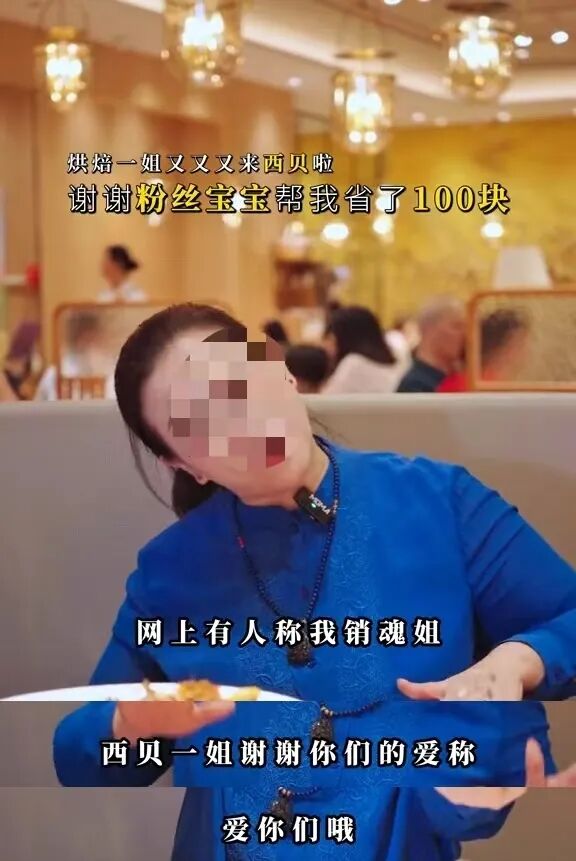 首先是其于10月11日发布的一条探店西贝的视频中,“销魂姐”一边摇头晃脑,双手一边在耳边“比耶”。同时嘴里哼唱着“谢谢你们把西贝价格打下来”。