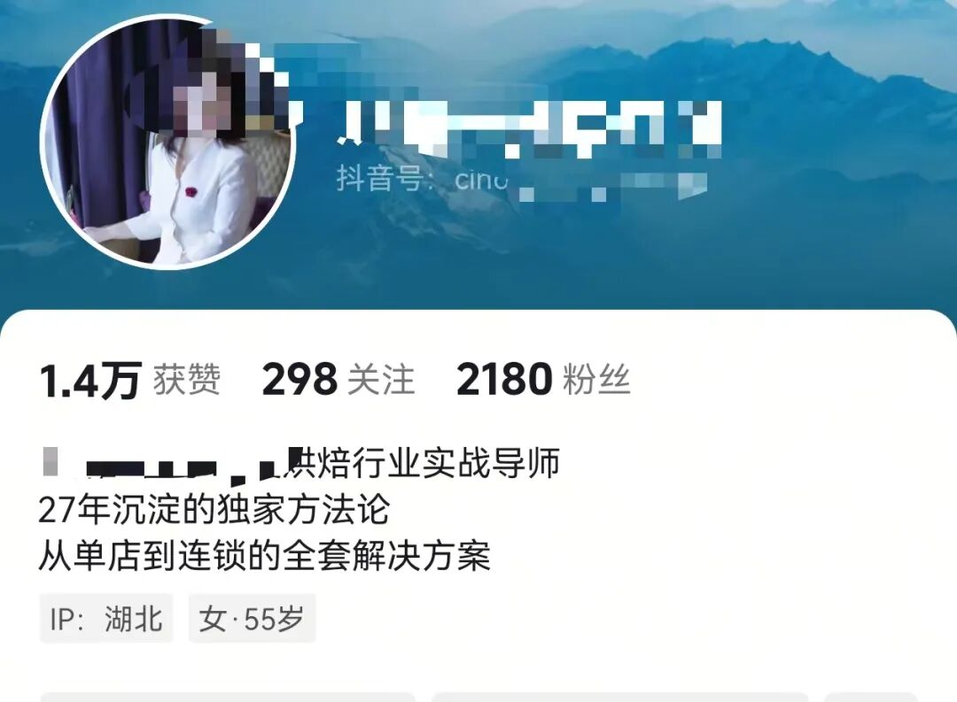笔者注意到,“销魂姐”个人简介为“烘焙行业实战导师,27年沉淀的独家方法论,从单店到连锁的全套解决方案”。