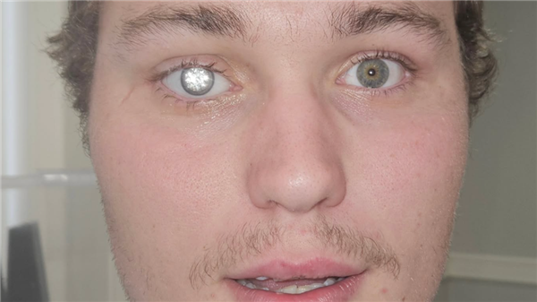 他17岁感染弓形虫病后,右眼就开始慢慢失明,多次手术后,右眼依然没保住,不得不将其摘除。此后,为了美观,右眼就用义眼代替。