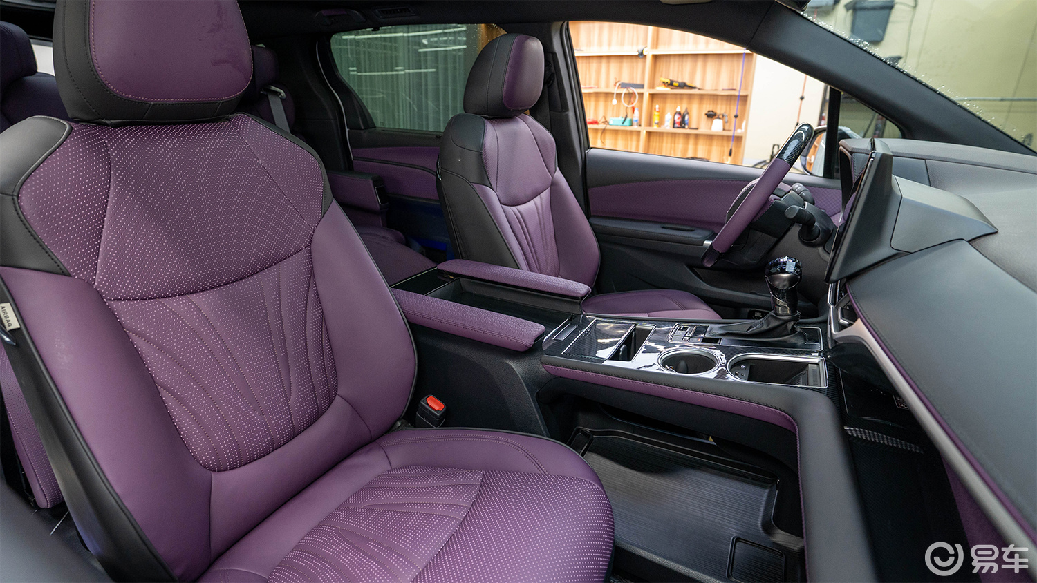 方向盘升级成桃木 + 真皮拼接,桃木纹理自然舒展,摸起来温润有质感,和内饰紫色调完美呼应。不仅视觉上提升档次,握感也更贴合手掌,开车时连操控都变成一种享受,商务范儿直接拿捏。