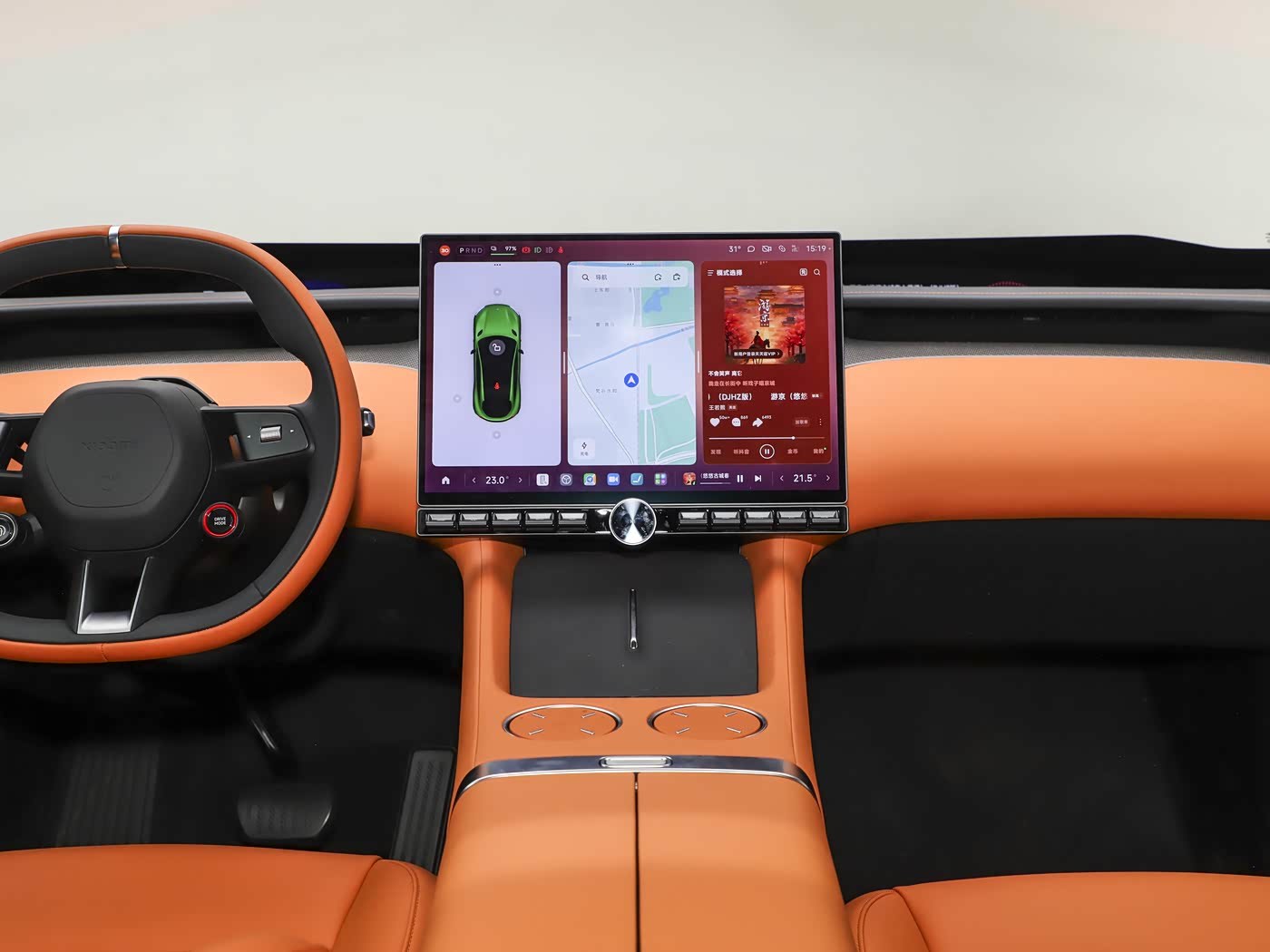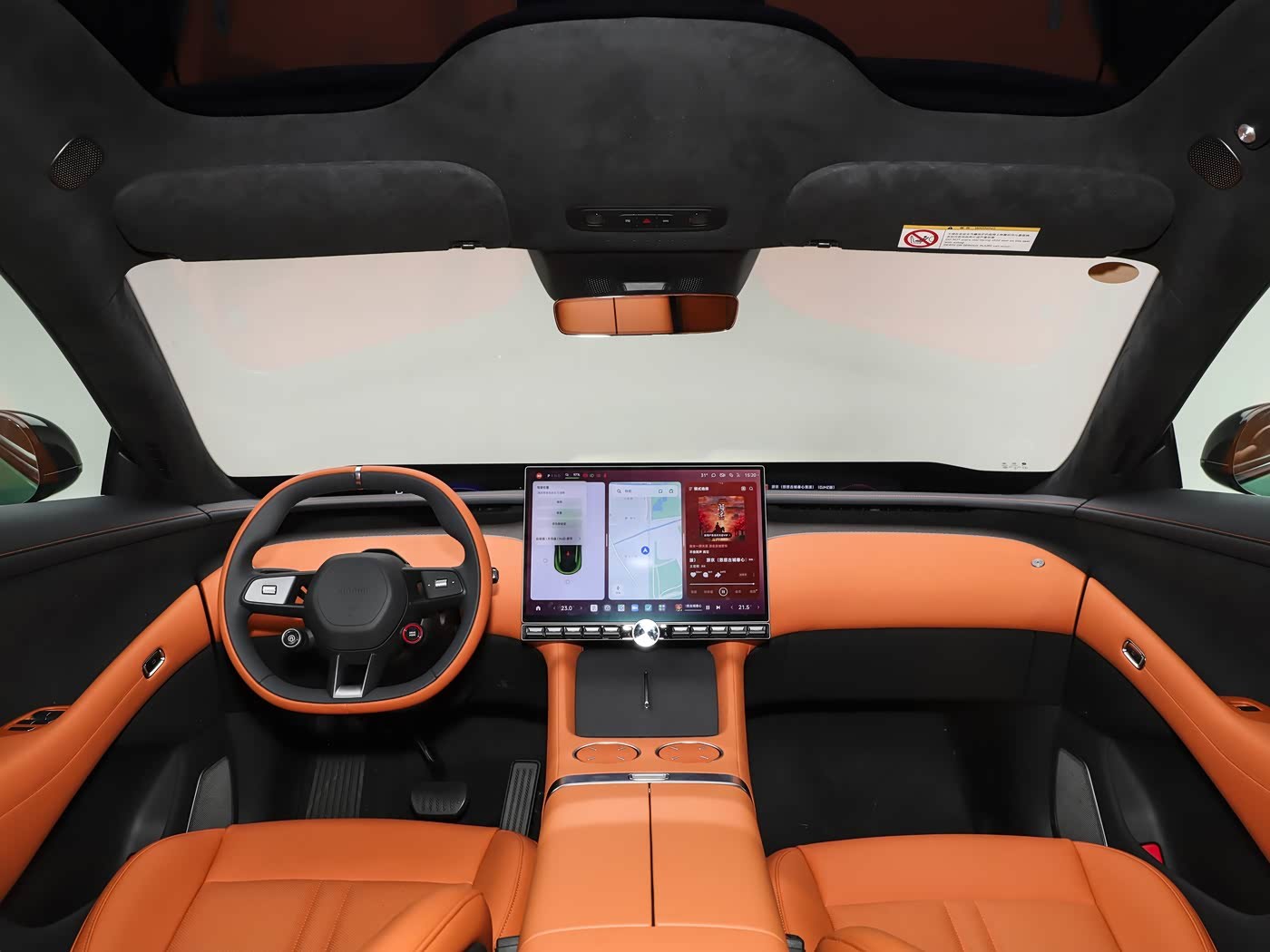 小米YU7内饰主打“双区环绕”理念与科技豪华感。核心亮点是Xiaomi HyperVision 天际屏全景显示(3块MiniLED组成1.1米超宽屏),108PPD高清、1200nits亮度,支持信息卡片自由组合。配备16.1英寸中控屏(骁龙8 Gen3芯片,澎湃OS),支持三界面同显、手机应用流转及CarPlay。细节升级突出:前排双零重力座椅(通风/加热/10点按摩)、全车9处磁吸拓展坞(支持无线充电支架等)、车外语音控制(20米)、双层静音玻璃、后排6.68英寸智慧屏、车载冰箱、1.7米智能调光天幕等。松石灰等4种配色。