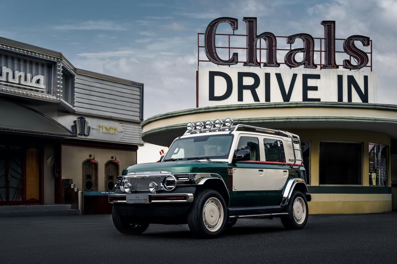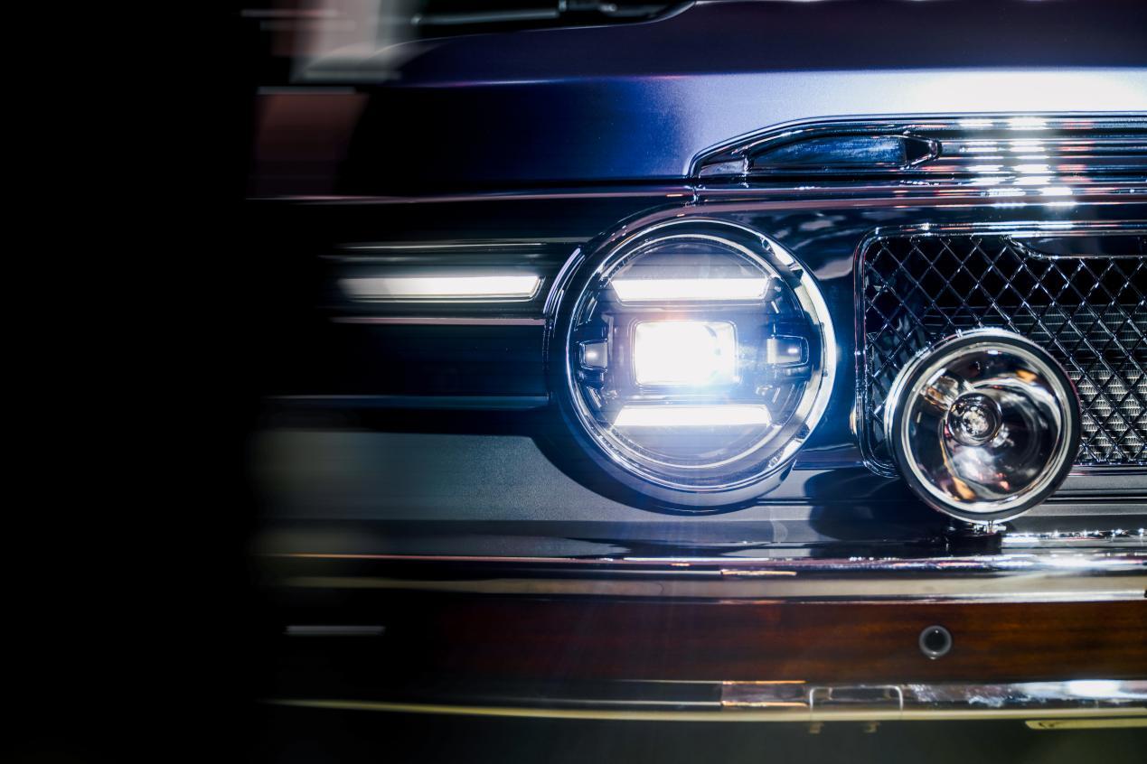 V23复古版的设计灵感源自上世纪70年代经典SUV的探索精神。标志性的方正车身轮廓、车顶探照灯与“大饼轮毂”,承载着公路旅行情怀。而为复刻这份经典,其前后包围及进气格栅采用4K级手工抛光加高亮电镀工艺的不锈钢材质打造,光泽复古且坚固耐磨。
