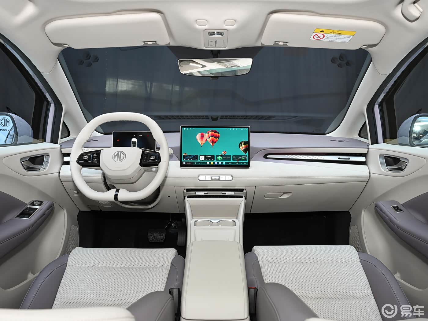 内饰配备15.6英寸2.5K悬浮中控屏,内置高通8155芯片。MG×OPPO智联系统支持手机无感互联、AI生态融合等功能,实现语音备车、摇一摇导航等智慧交互。对称式中控台与运动方向盘保留品牌经典元素。