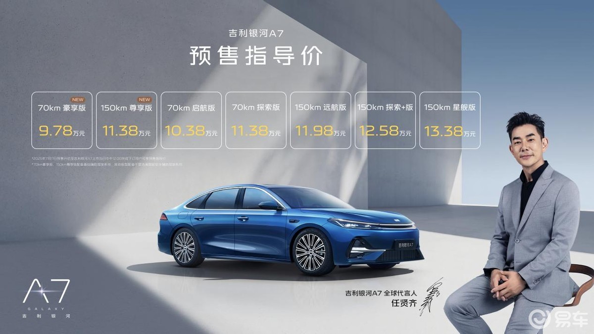 7月18日,为响应广大用户需求,吉利银河A7加推两款基础辅助驾驶版型——70km 豪享版和150km 尊享版,预售价格分别为9.78万元和11.38万元。吉利银河A7将智能辅助驾驶选择权交还给用户,提供更具质价比的购车选择,通过加推基础版辅助驾驶版型,满足了更多用户对于智驾功能不同层次的需求,让更多对辅助驾驶功能需求有限的用户能以更亲民的价格体会到吉利银河A7的标杆品质。