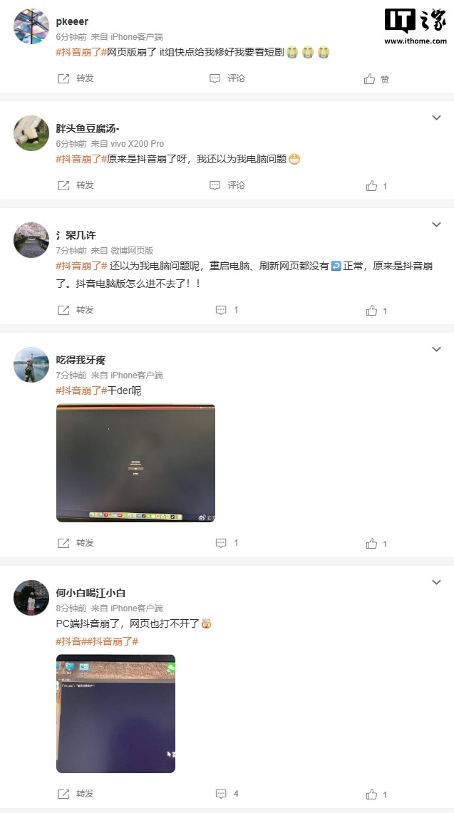 IT之家 4 月 4 日消息,今晚,有部分网友反馈抖音网页版 / 电脑版出现网络崩溃、触发过载保护等问题,导致用户无法访问。