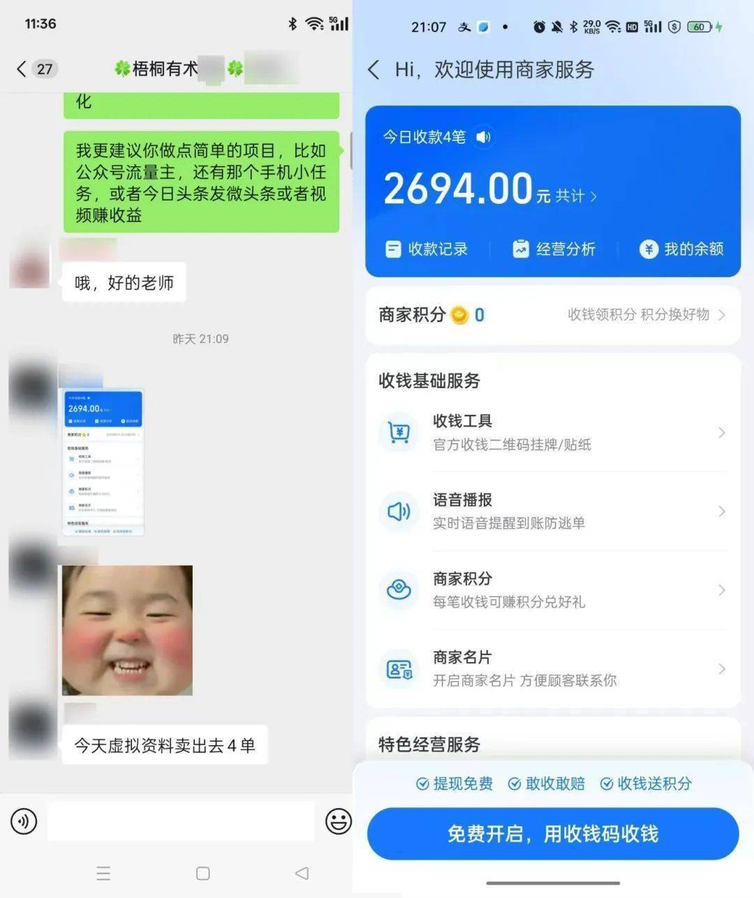 再比如说这个哥们,他做的是小红书的虚拟资料,做起来也是很暴力,一天时间的卖出去4单挣了2694,而且这个虚拟资料可以说几乎是0成本。