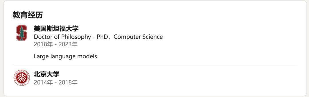 他本科毕业于清华大学,博士毕业于斯坦福大学(计算机科学),曾获得过 ICLR 2022 杰出论文奖。