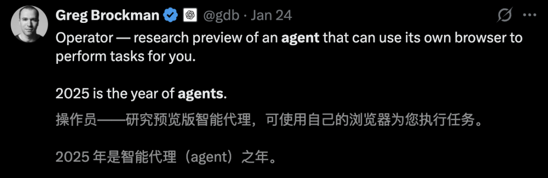 OpenAI总裁Greg Brockman多次公开表示,「2025年,是AI智能体的元年」。