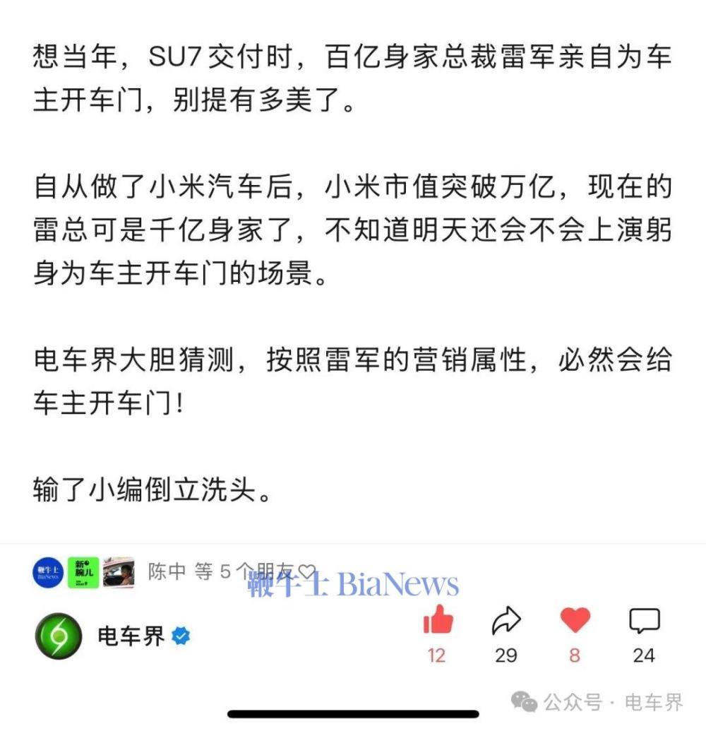 无论他是身家数百亿,还是身家千亿,他,始终给小米车主开车门!