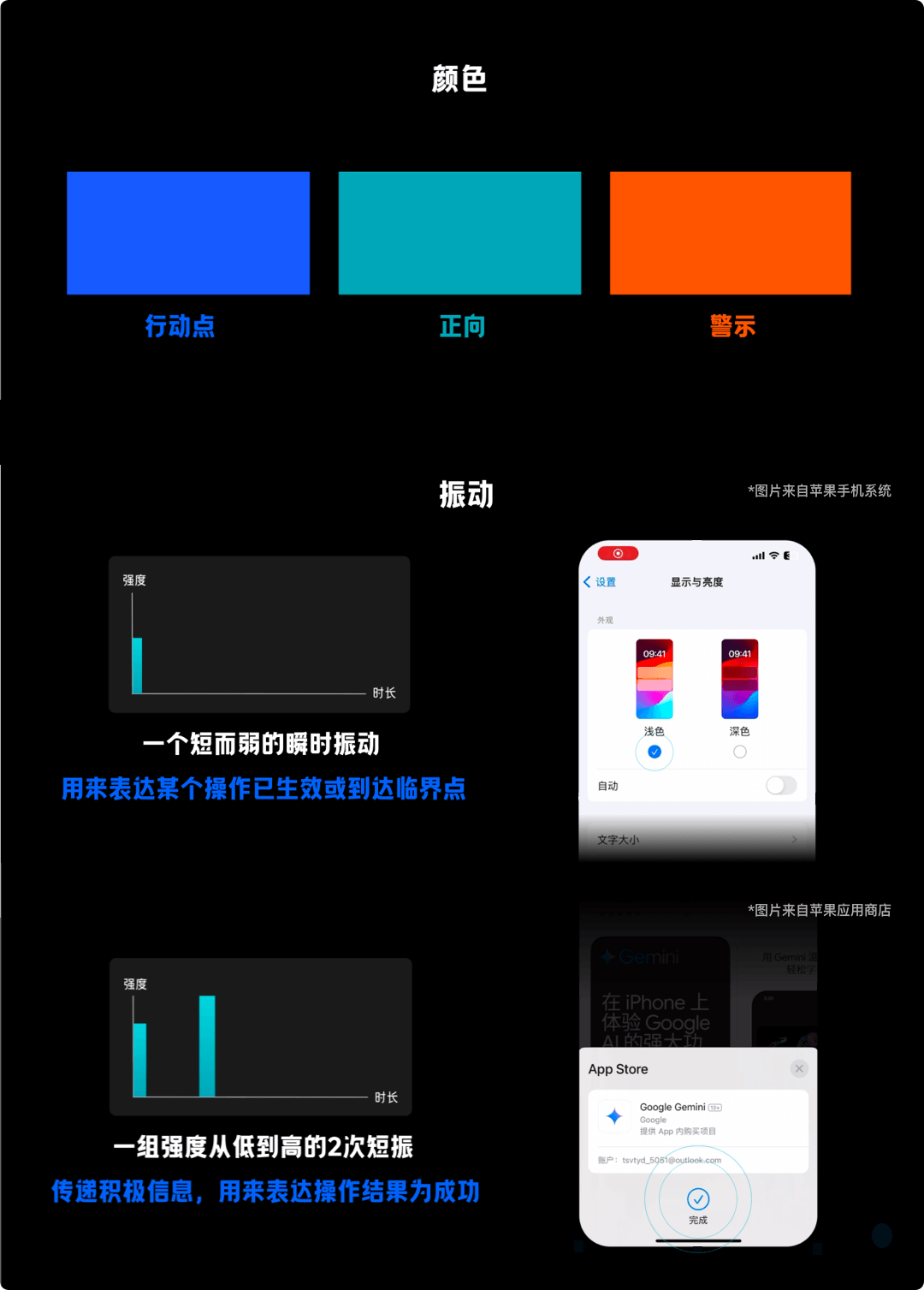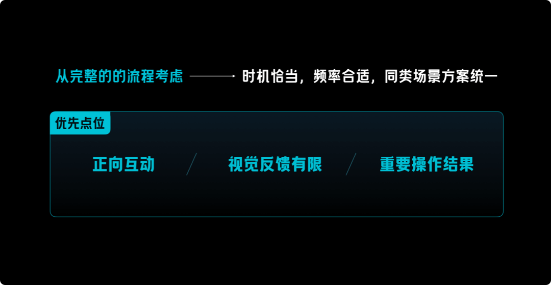 我们建议在完整的流程中,可以优先考虑在以下点位增加振动,正向互动点位,视觉反馈有限的点位,和重要操作结果点位。
