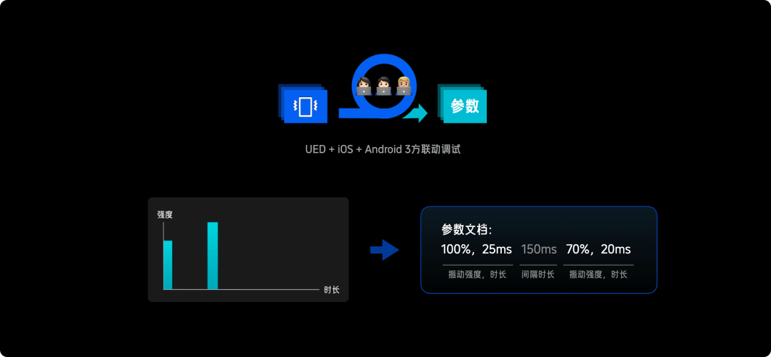 ●标准化组件线:设计规范团队与组件技术团队合作,通过规范化/组件化的思路。建立可复用的振动组件库,实现跨业务线的敏捷调用,确保振动效果一致。
