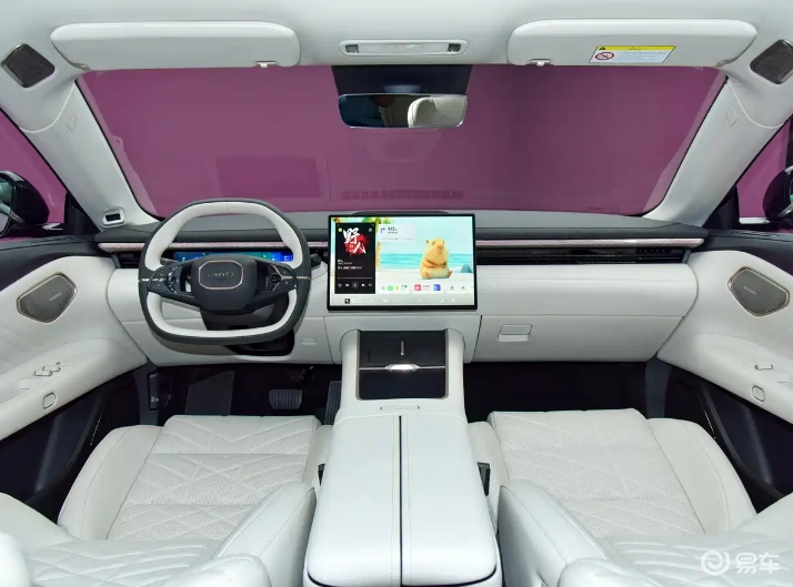 此外,新车配备有Nappa真皮座椅,并且前后四个座椅都支持云感零压,配备电动调节、通风、加热及按摩功能。其他配置方面,新车前排配备有50W无线快充、256色RGB AI鎏光氛围灯、车载冰箱等等。