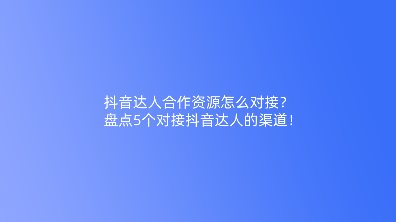 怎么找抖音达人?去哪里对接资源?不想被骗,有没有靠谱的渠道?