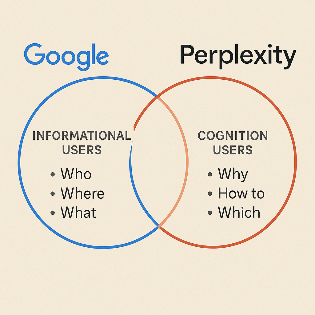首先,是用户层级的错位。谷歌的搜索服务,覆盖的是最广泛的大众信息需求,用户的提问通常是“谁”“哪里”“是什么”这类基础型问题。而Perplexity所专注的,是“为什么”“怎么做”“哪个好”这类更复杂、更具认知门槛的问题。它所服务的不是“信息型用户”,而是“认知型用户”——那些希望快速获取深度信息、完成某项具体任务、或者对答案的质量有更高要求的人群。
