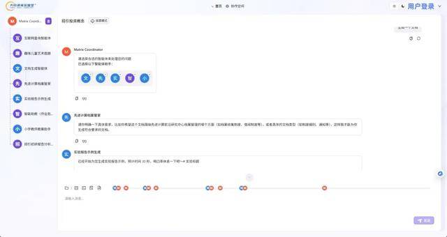 AI Matrix能够动态调度不同专业领域的智能体,形成一个高效的“专家会诊”机制:系统首先进行关键信息提取,然后根据需求自动召唤相关领域的智能体进行协同分析。