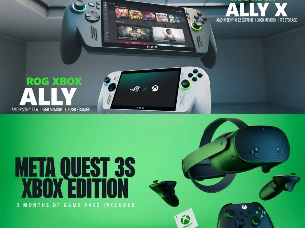同为御三家之一的微软也不甘人后,这个月也带来了久违的新硬件:ROG Xbox Ally 和 Meta Quest 3S Xbox Edition,分别是 Xbox 从未涉足的游戏掌机和 VR 头显形态。